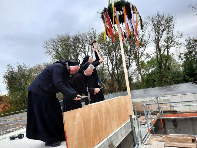 Mit einem Richtfest wurde am Freitag, 17. November, auf dem historischen Gut Steuerwald in Hildesheim die Fertigstellung des Rohbaus des Michaelis Hospizes gefeiert.