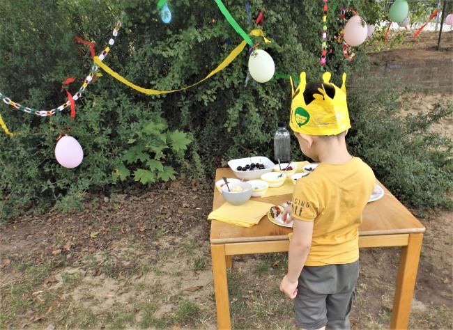 Zur Stärkung für die Kleinen hatten die Mitarbeiter*innen ein Buffet vorbereitet. Es gab Brotspieße, verschiedene Sorten Obst, Käsehäppchen, Brot und Aufstrich und natürlich Erfrischungsgetränke.
