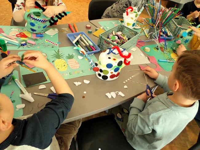 Bei einem zweiten Besuch legten die Kinder schließlich selbst Hand an. Voller Begeisterung gestalteten sie fantasievolle und farbenfrohe Gießgefäße. Diese werden in der Kita ausgestellt und können dann auch von den Eltern der Kita-Kinder bewundert werden.